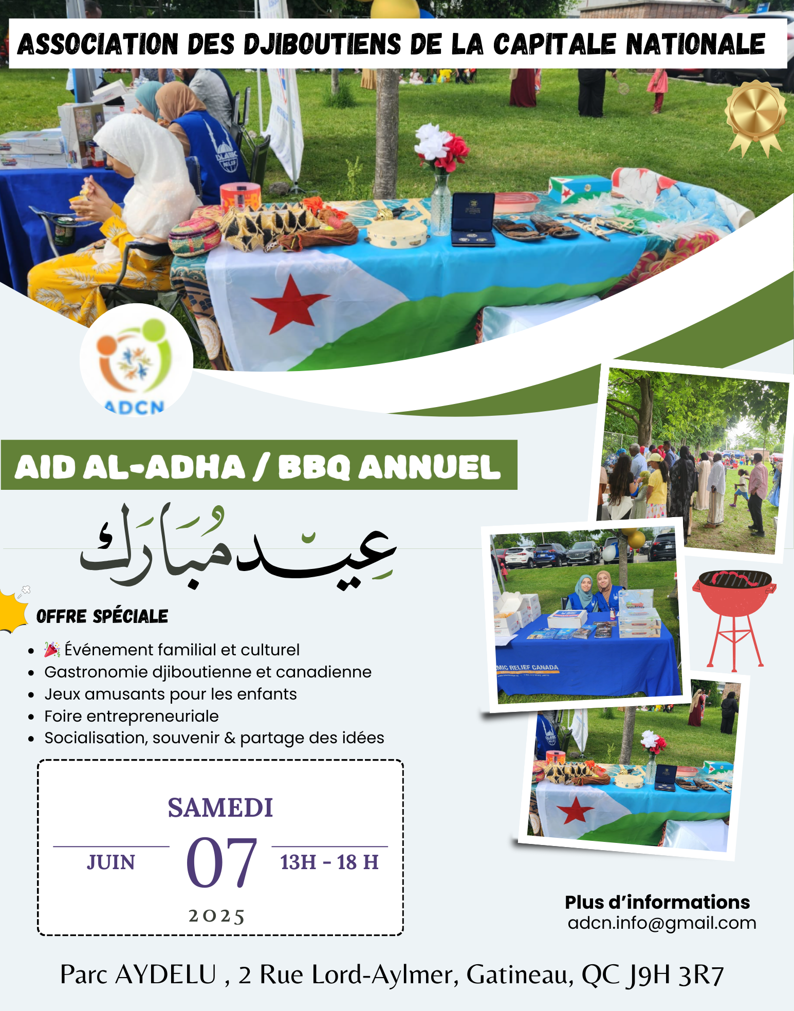 À l'occasion de l'Aïd-Al-Adha, nous avons le plaisir de vous inviter à célébrer ensemble ce moment de joie et de partage. Rejoignez-nous pour une journée mémorable remplie de rires, de délicieuses spécialités et de belles retrouvailles et rencontres. Détails de l'événement:  Date : 7 juin 2025  Heure : De 13 à 18h  Lieu : Parc AYDELU , 2 […]